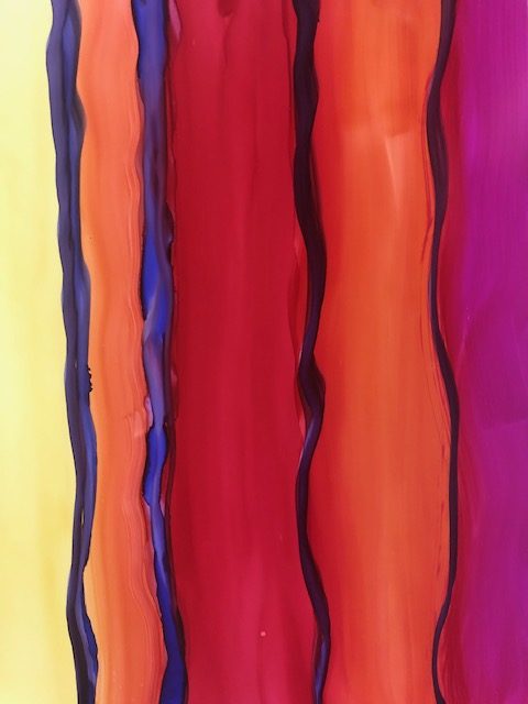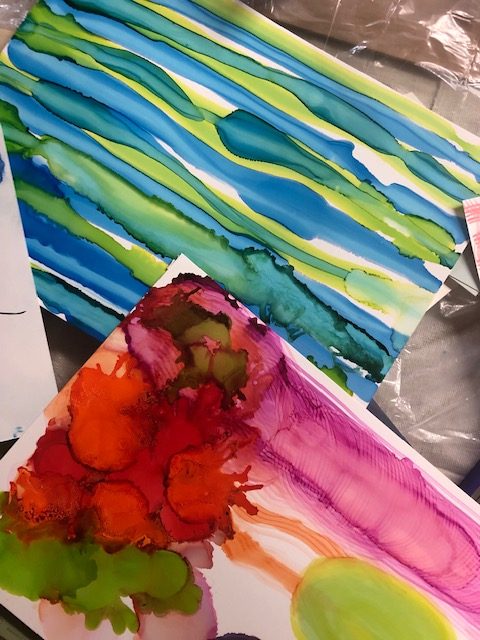 The first items you will need are Alcohol Ink, Yupo paper, 91% alcohol and wood panels. I order my Ink, paper, and panels from Blick Art Materials. I am linking what I use but there are choices to make for each item. I use primarily Ranger Inks but there are others available that perform well also. I prefer the tips on the bottles that Ranger produces. The Yupo paper I use is the bright white watercolor paper in 11″ x 14″, it comes in two other types, translucent and heavy duty. The panels come in various sizes and also various depths. I use a depth of 1 1/2″ because it can be hung or sit on a shelf, it just looks better than some of the thinner ones. You will also want to wear gloves, you will get ink on your hands and it isn’t easy to get it off.